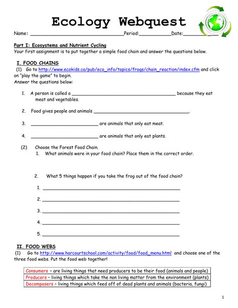 Online PDF ECOLOGY WEBQUEST ANSWER KEY Doc Gutenberg